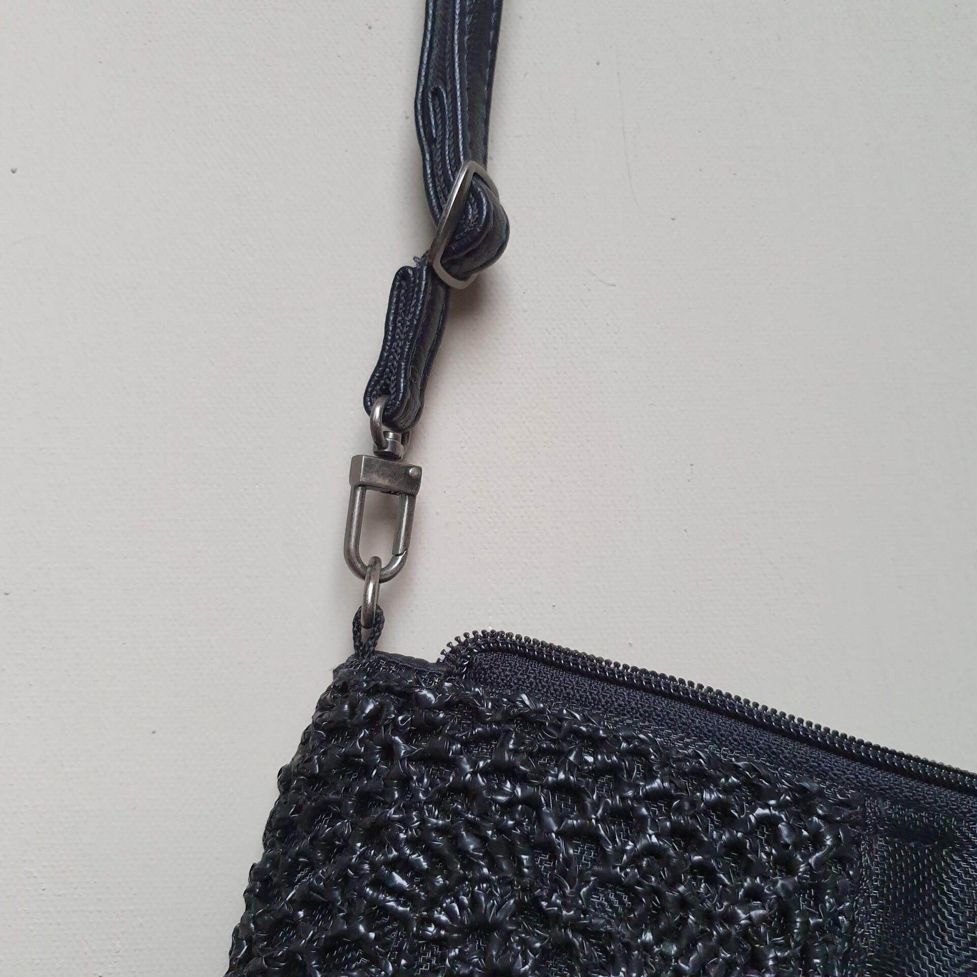 - Uniek aan deze tas is het geweven patroon die gemaakt is van plastic netten en draagtassen.