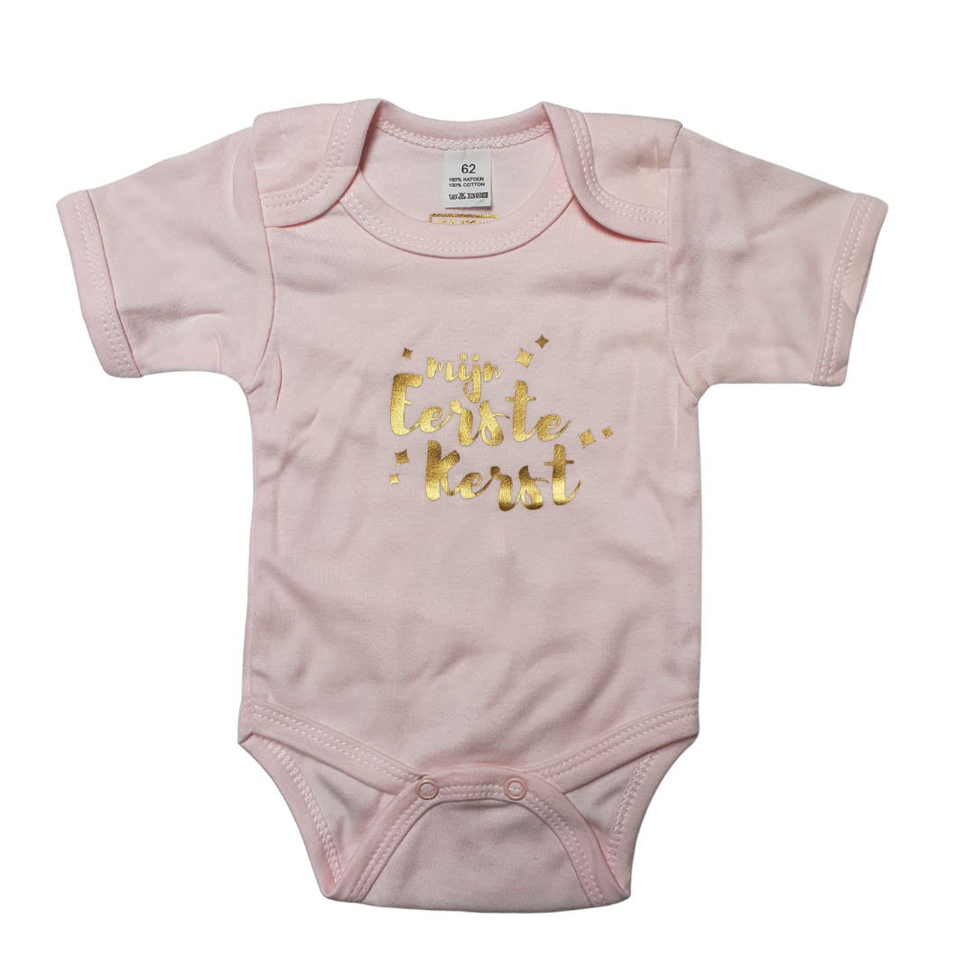 Mijn Eerste Kerst | 62 | Goud op Roze Romper