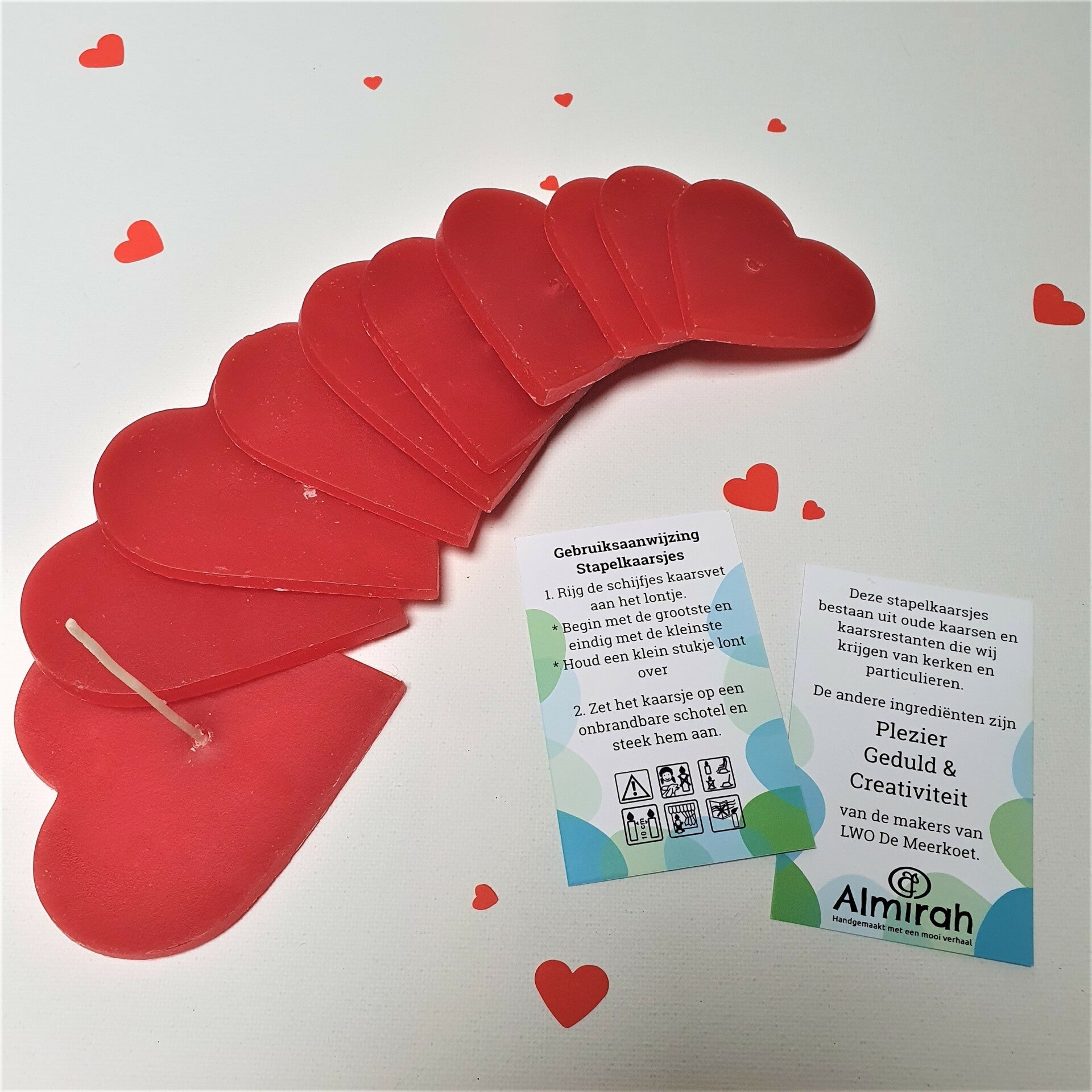 - Een hartjes stapelkaars gemaakt van recycled kaarsvet door de creatieve dagbesteders van De Meerkoet in Alphen aan den Rijn. Onder begeleiding van Almirah.