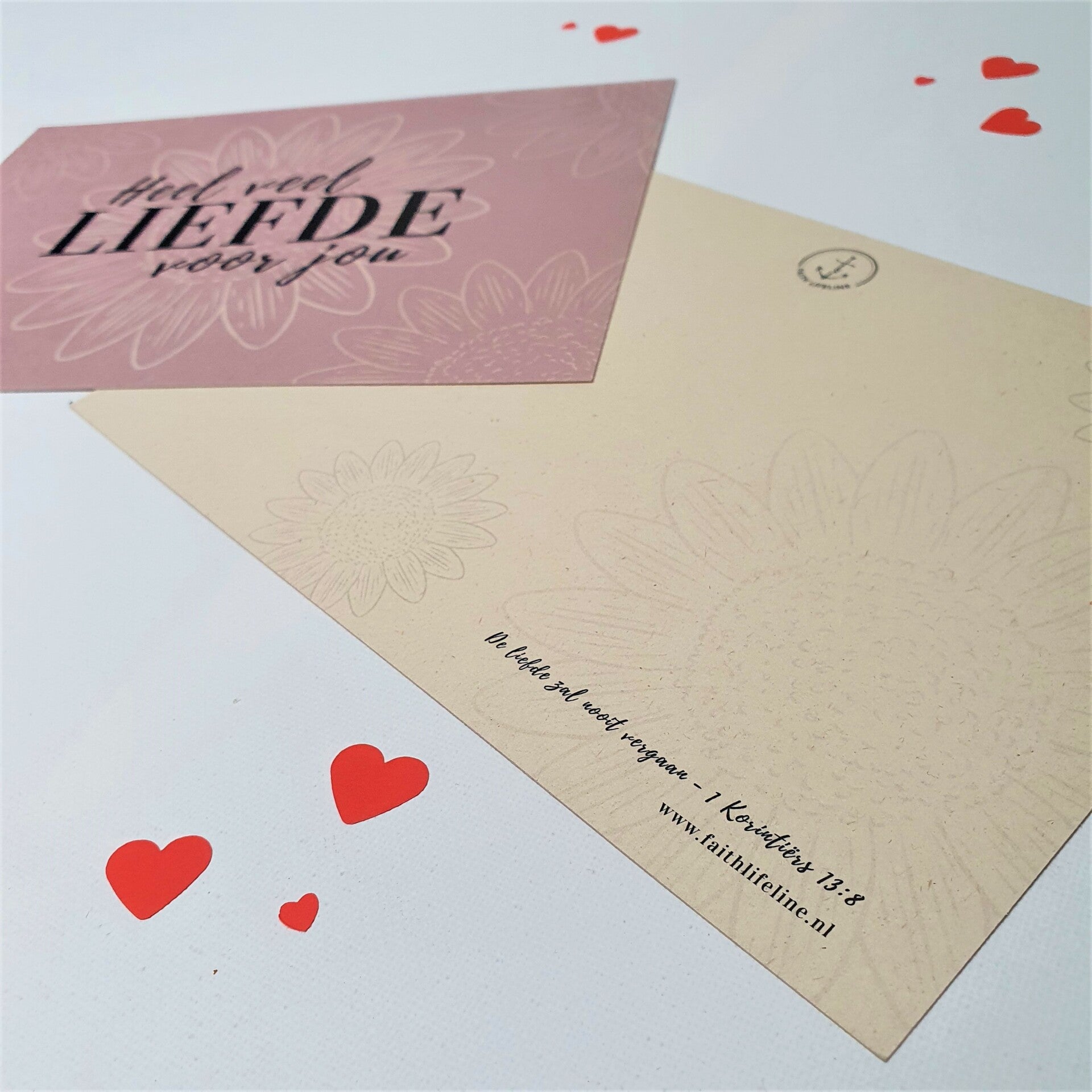 - Een A5 formaat duurzame wenskaart met de tekst "Heel veel LIEFDE voor jou". De kaart is van Paperwise ecopapier is gemaakt van landbouwafval en het productieproces is CO2 neutraal!