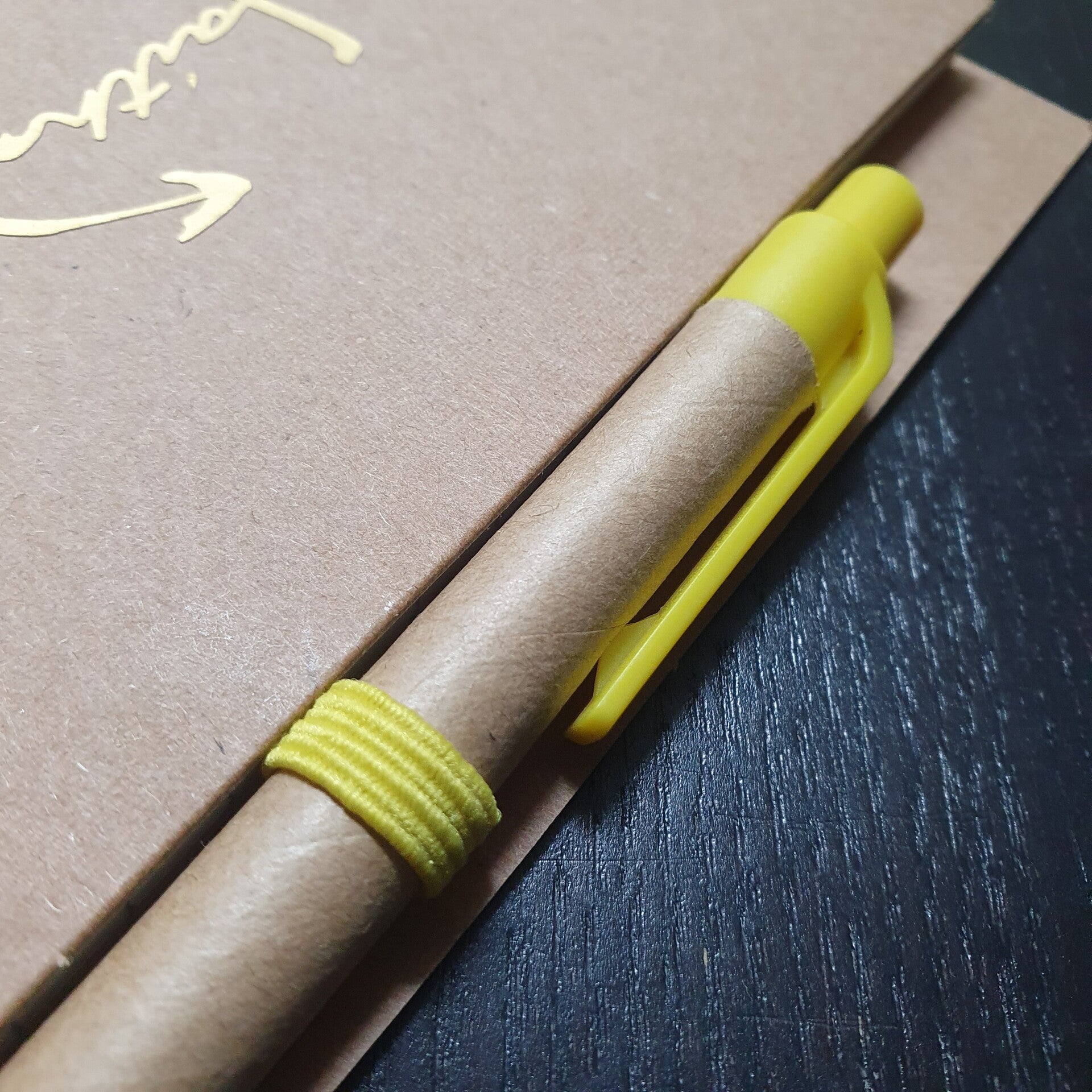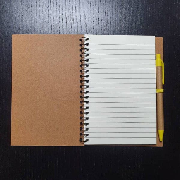 Eco Notebook "FEELING BLESSED" Made from recycled kraft & paper 60 lined pages Spiral Includes recycled kraft pen A5 format gold print