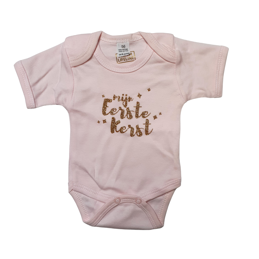 Mijn Eerste Kerst | 56 | GoudGlitter op Roze Romper